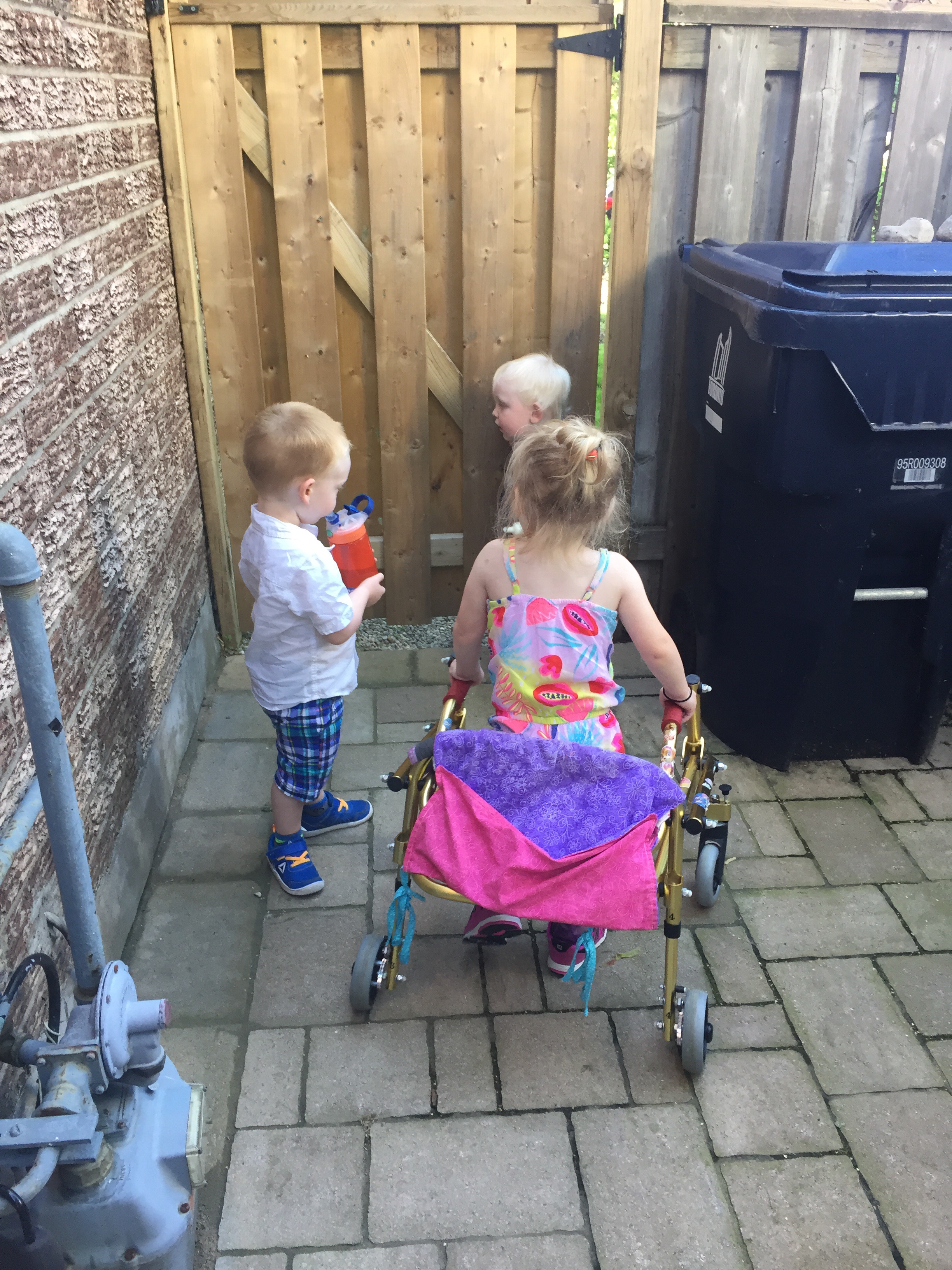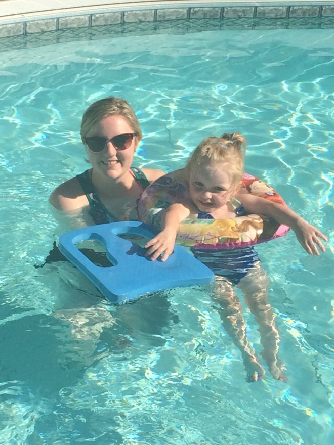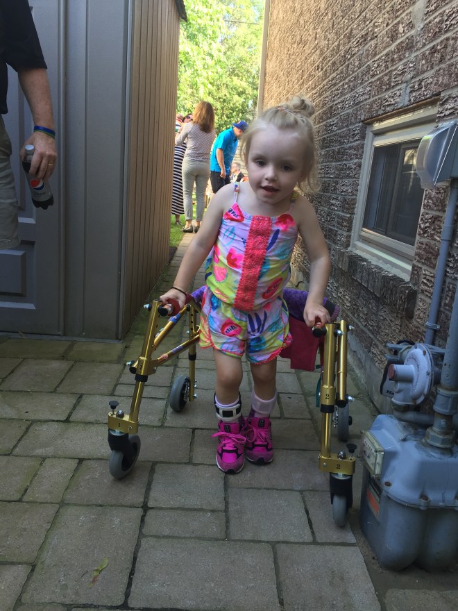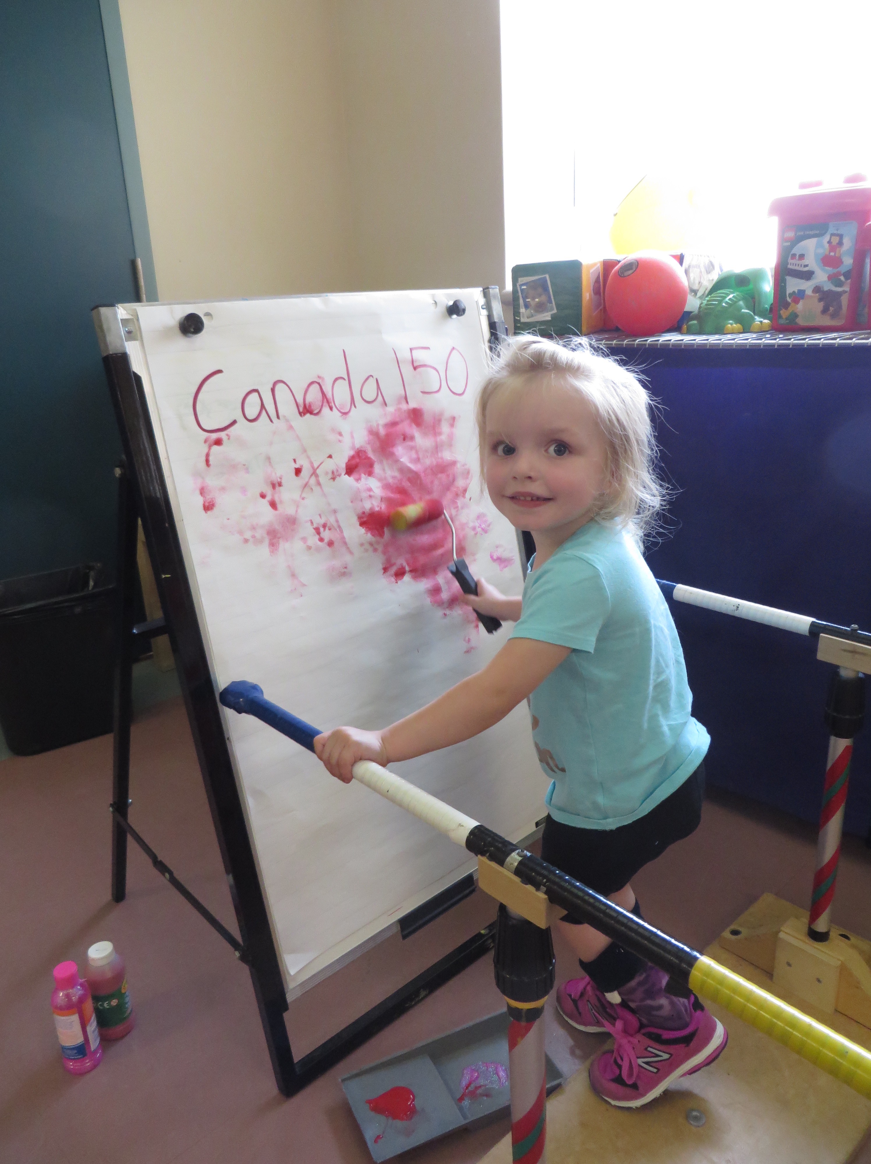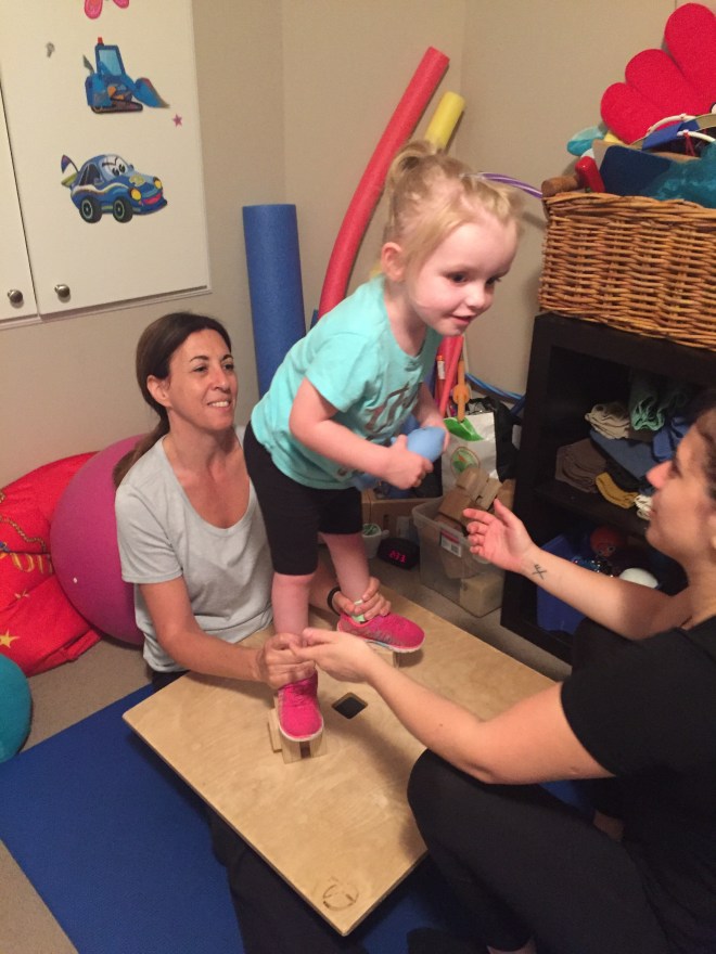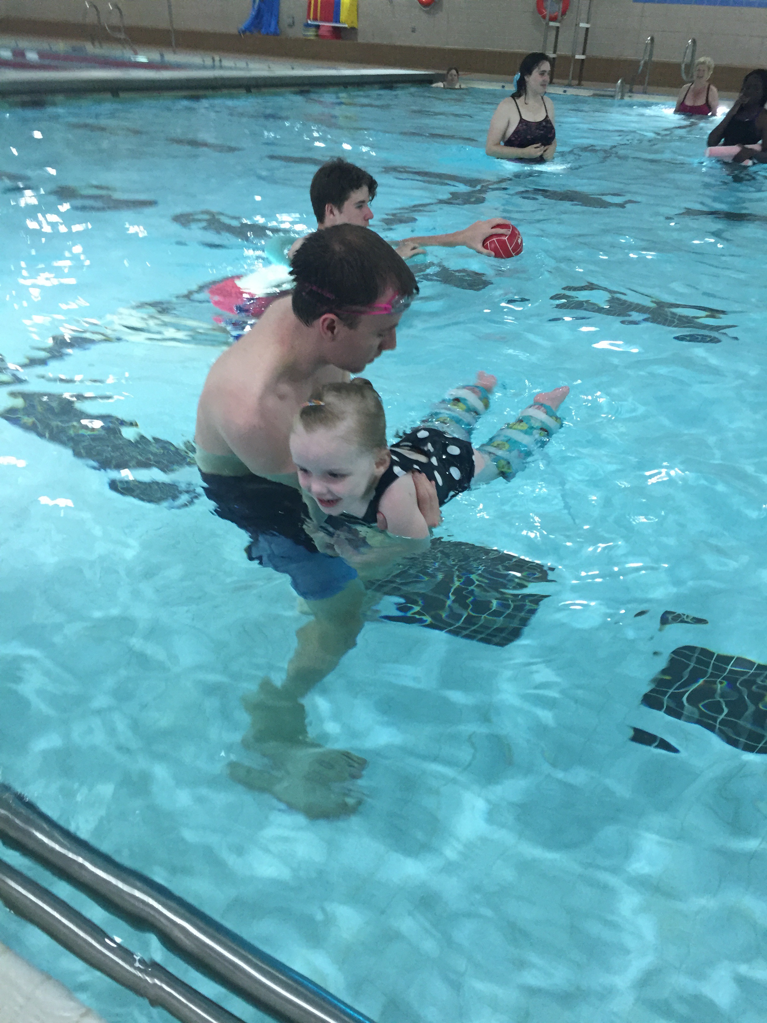 After camp, Mommy had a meeting at Variety Village and Madi worked with her trainer & buddy, Melissa. They did lots and lots of walking around the track, climbing, squat pushes on her scooter and she moved non stop for 1 hour! Thanks Melissa!