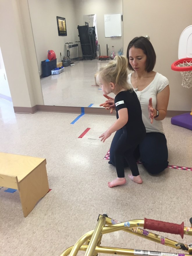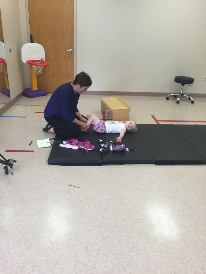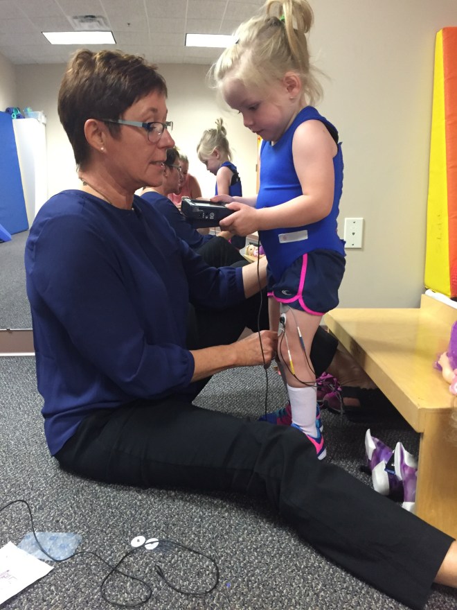The focus for the rest of the day was experimenting with different foot wear and compression garments to find what would give Madison the best alignment. From proper alignment and consistent feedback to her core, she will be able to build true strength in her muscles.