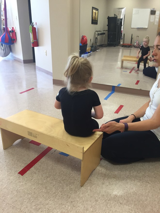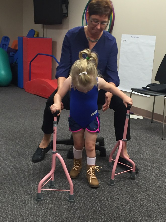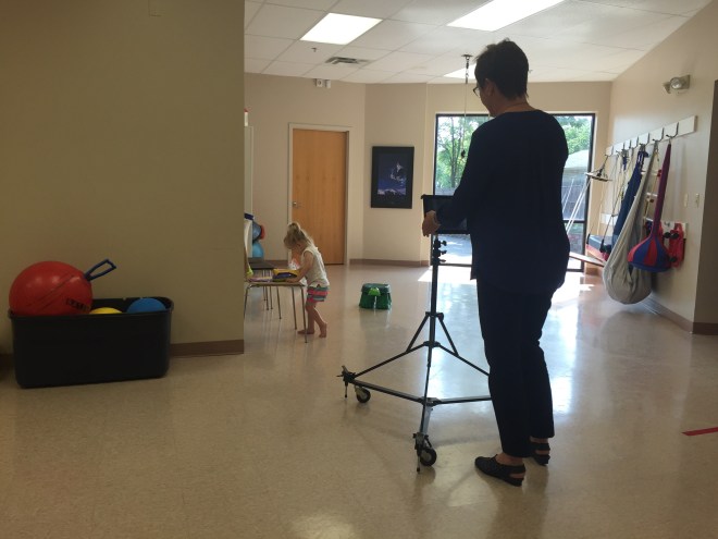 Madison had two sessions today. Two hours in the morning and one hour in the afternoon. The first part of the morning session was focused on Madi and Pia getting to know each other. Pia did some assessments and watched some videos of Madi before and after SDR. She reviewed our notes from St Louis and did a lot of video work with Madi observing her transitions, positioning and how she moves.
