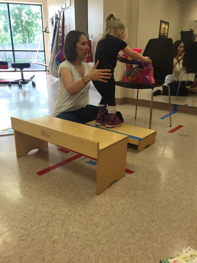 Madi really liked meeting Pia this morning. She is always curious when visiting new spaces about what toys and equipment will be there for her.