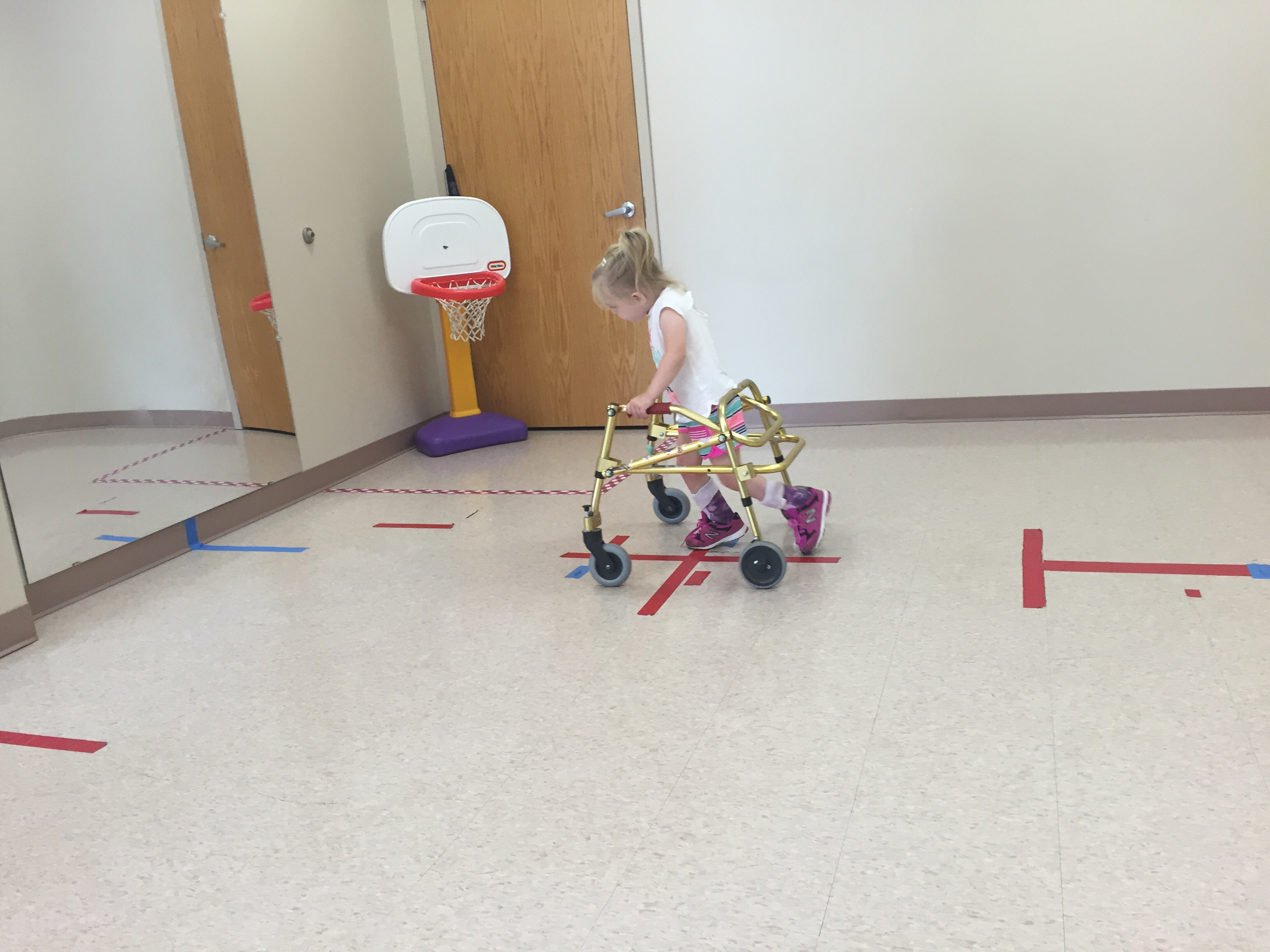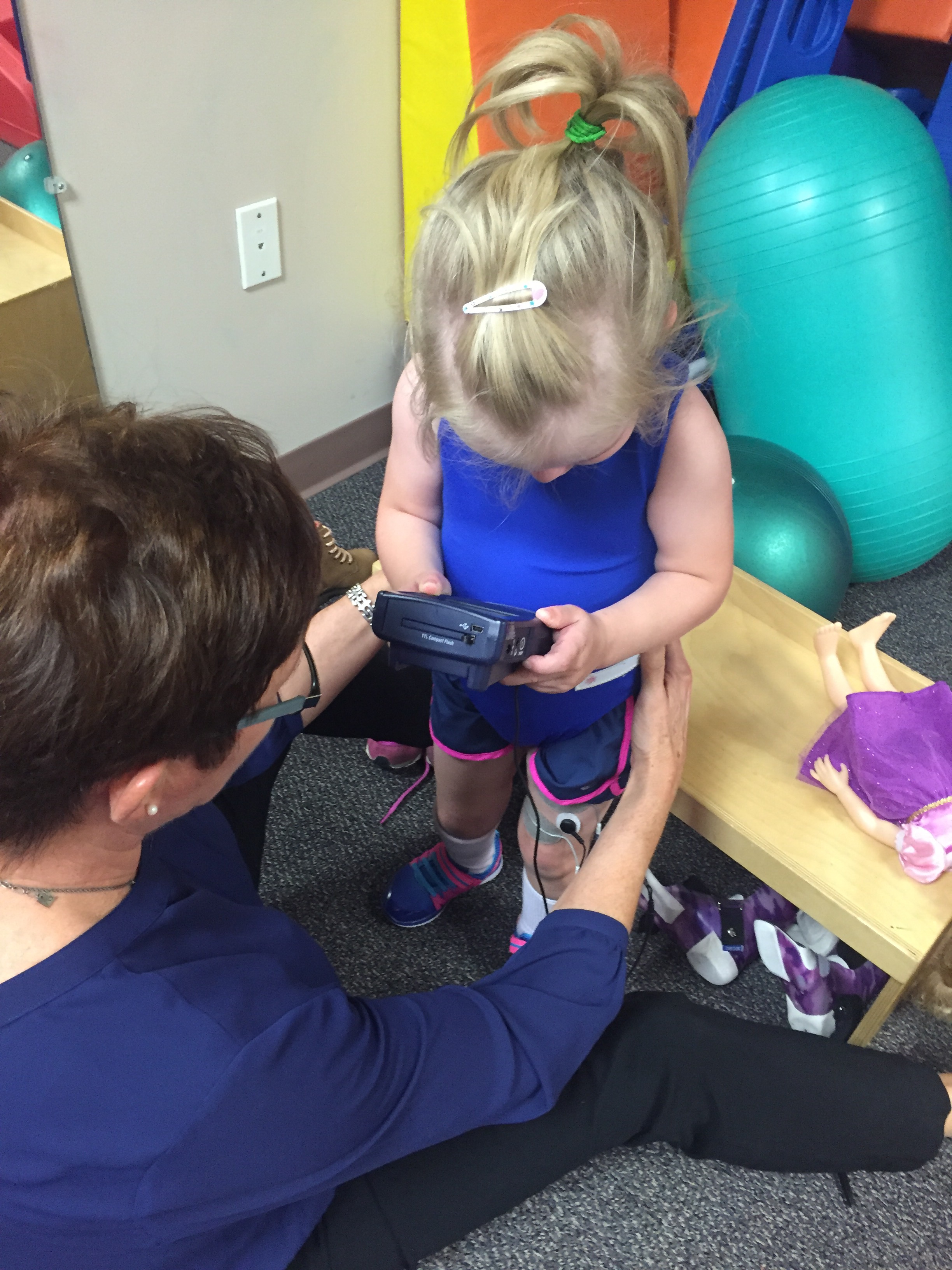 The focus for the rest of the day was experimenting with different foot wear and compression garments to find what would give Madison the best alignment. From proper alignment and consistent feedback to her core, she will be able to build true strength in her muscles.