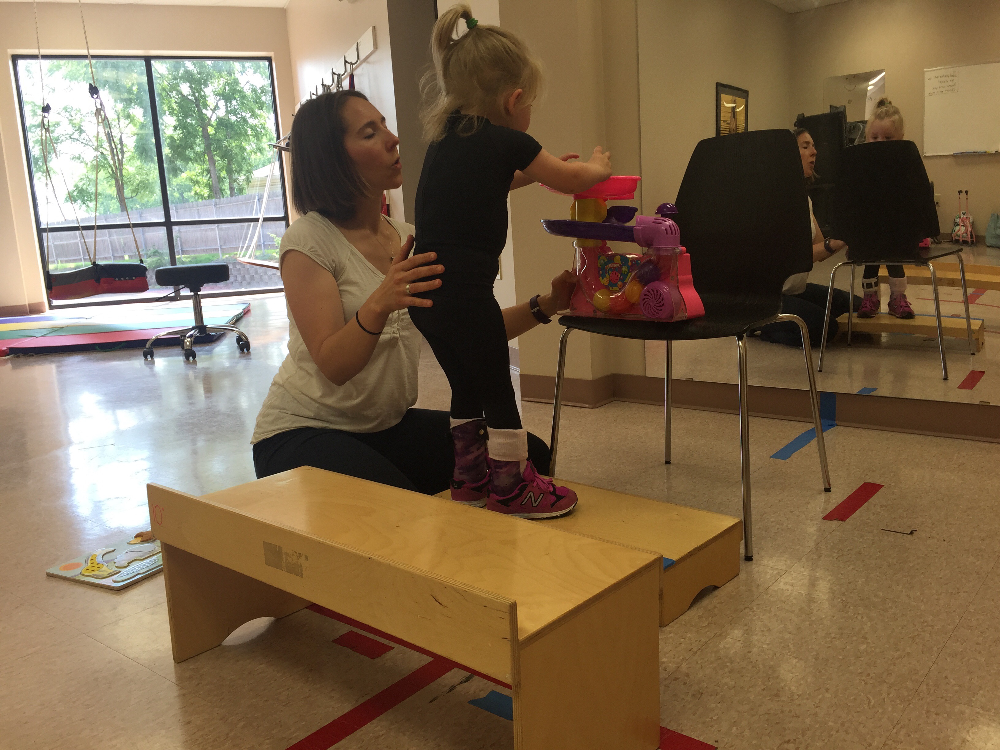 Madi really liked meeting Pia this morning. She is always curious when visiting new spaces about what toys and equipment will be there for her.