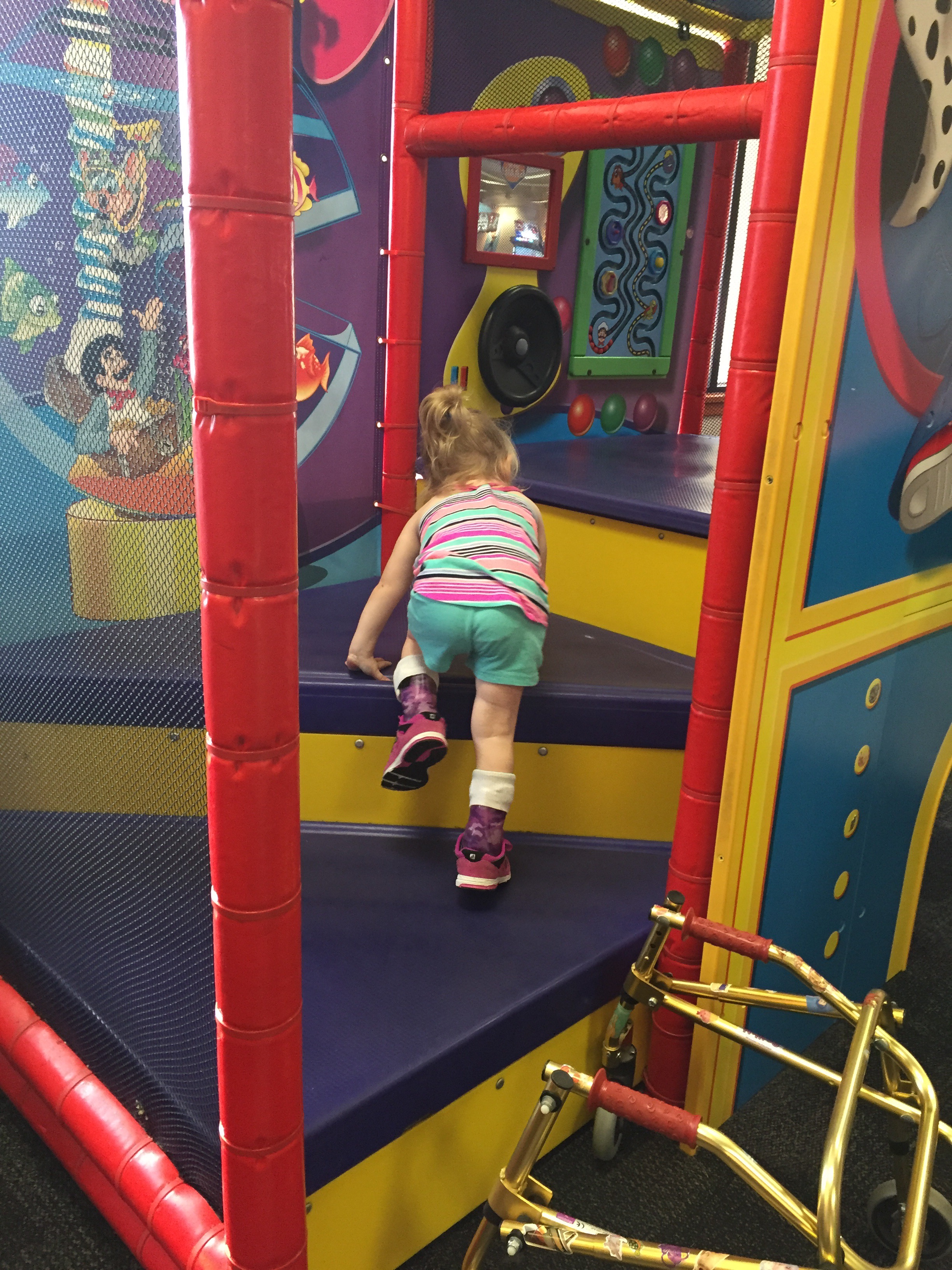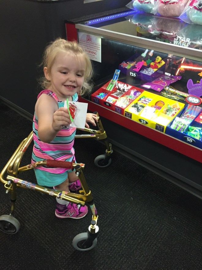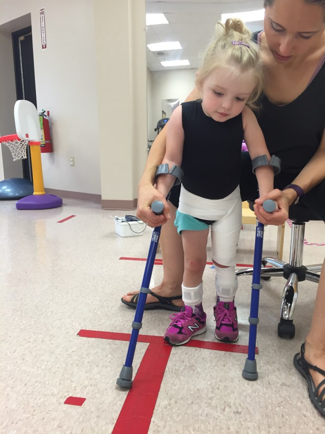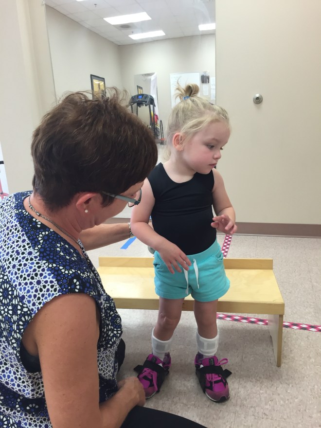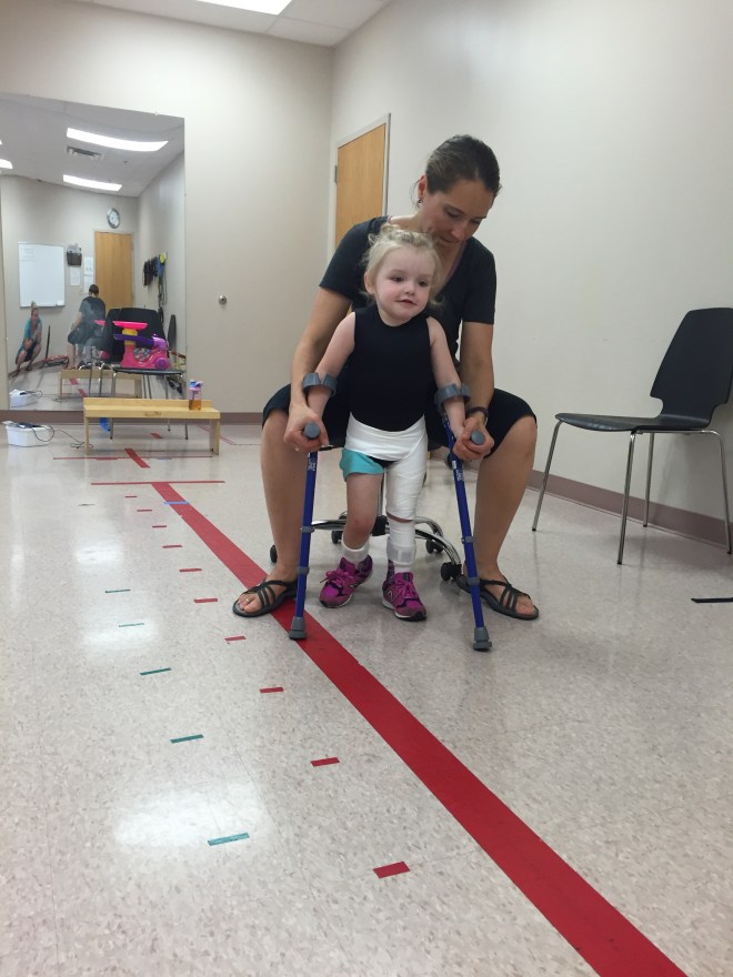 This afternoon she tried using forearm crutches for the first time. She also used single point canes. They were experimenting with less support to see what would happen. It was super challenging for Madison to coordinate, but her gait significantly looked better.