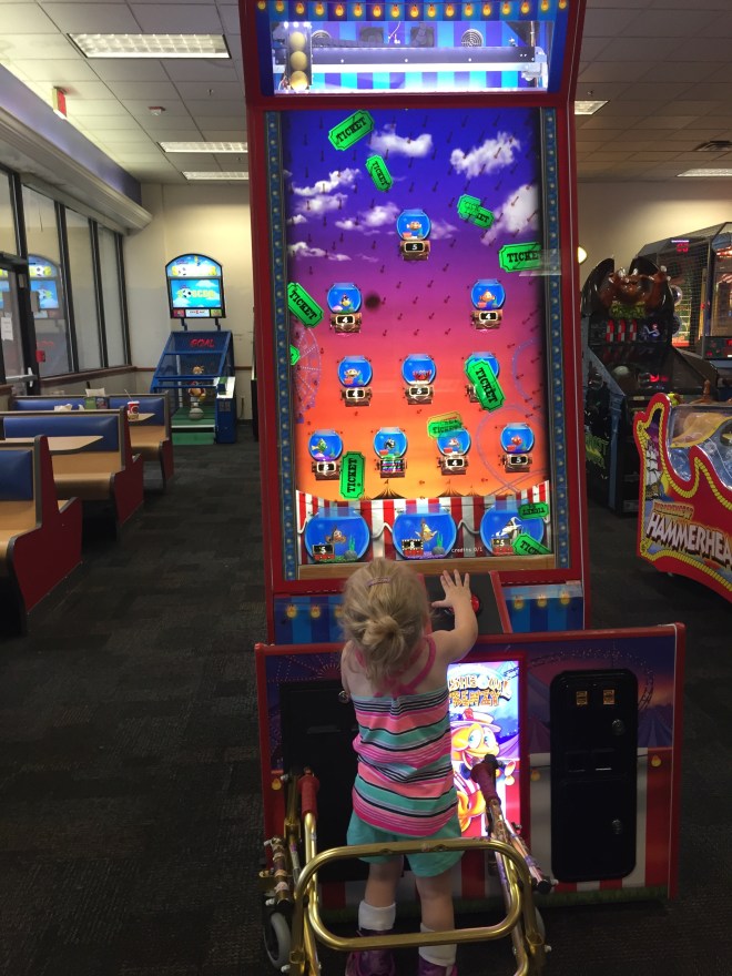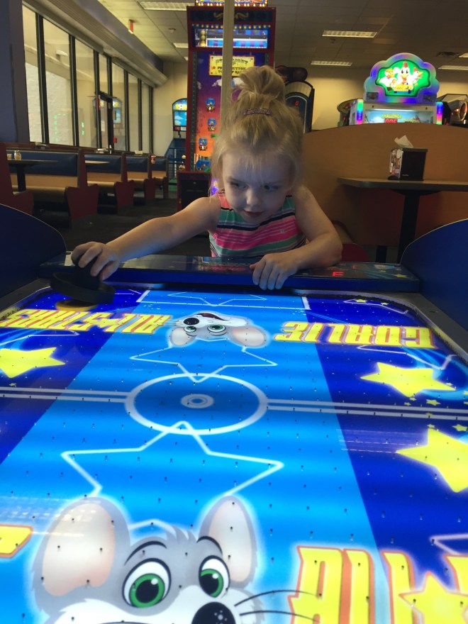 After her last session it was time for some fun…Chuckie Cheese for dinner and a play followed by a swim at the hotel and late night dessert!