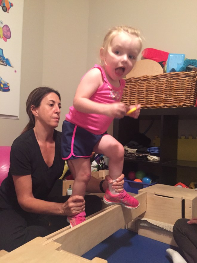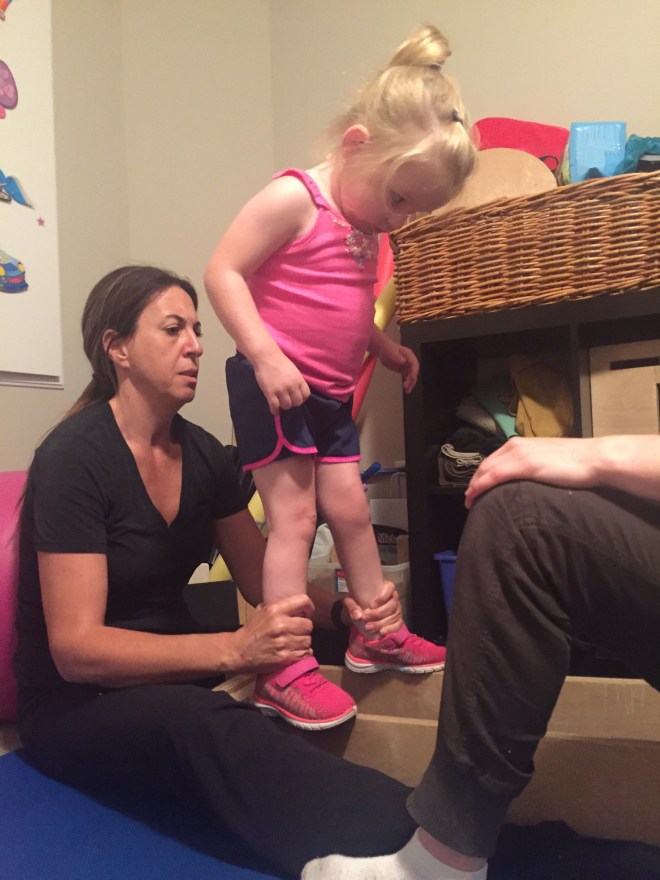 After some rest and some lunch, Madi headed to do some work with Joanne. She did amazing today! She is noticably stronger and more confident with the exercises than she was a few weeks ago. They also tried some walking today with no braces which is the direction we are soon heading in. She had excellent alignment during the exercises and demonstrate good strength and awareness.