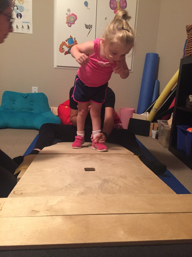 After some rest and some lunch, Madi headed to do some work with Joanne. She did amazing today! She is noticably stronger and more confident with the exercises than she was a few weeks ago. They also tried some walking today with no braces which is the direction we are soon heading in. She had excellent alignment during the exercises and demonstrate good strength and awareness.