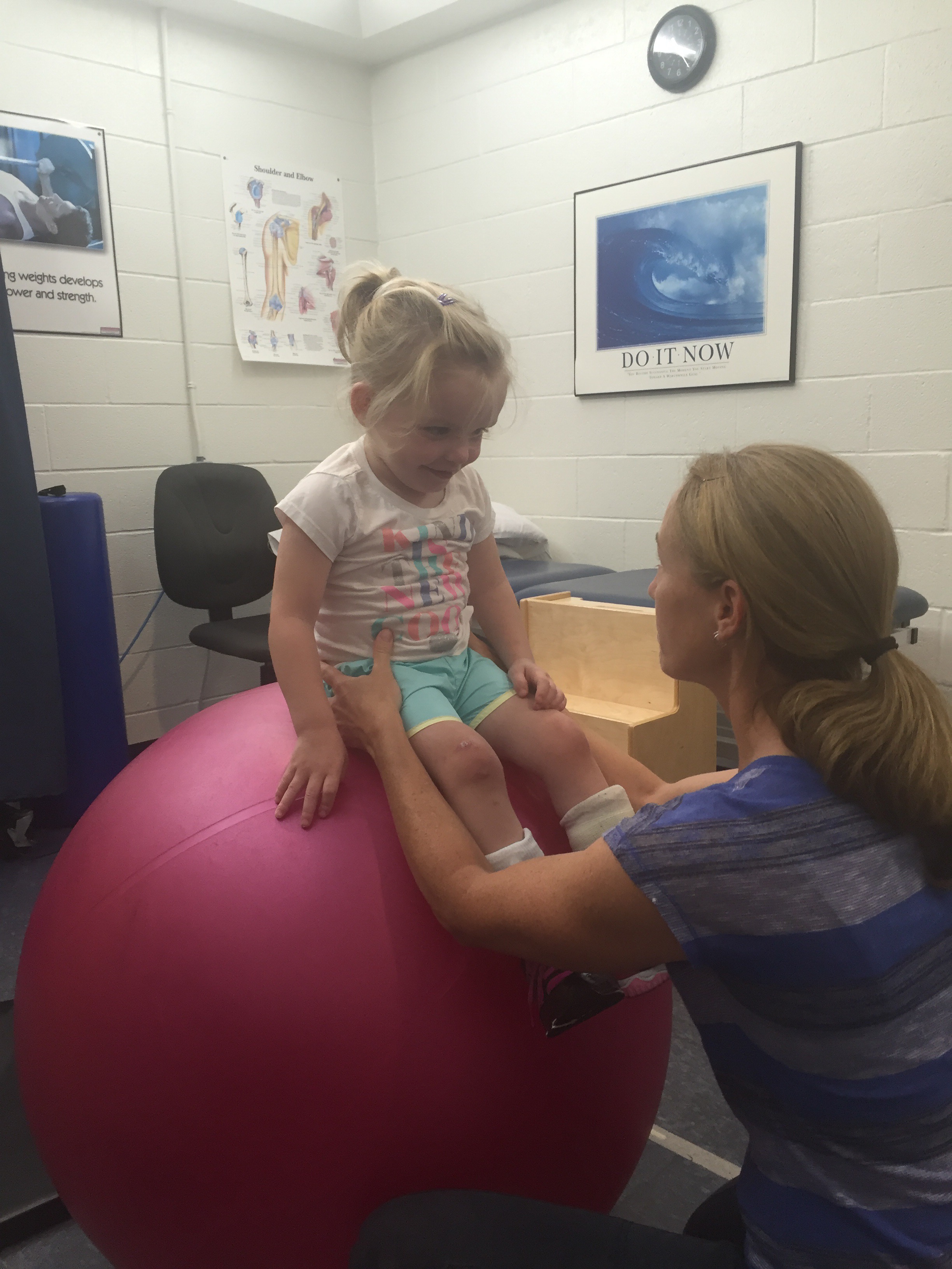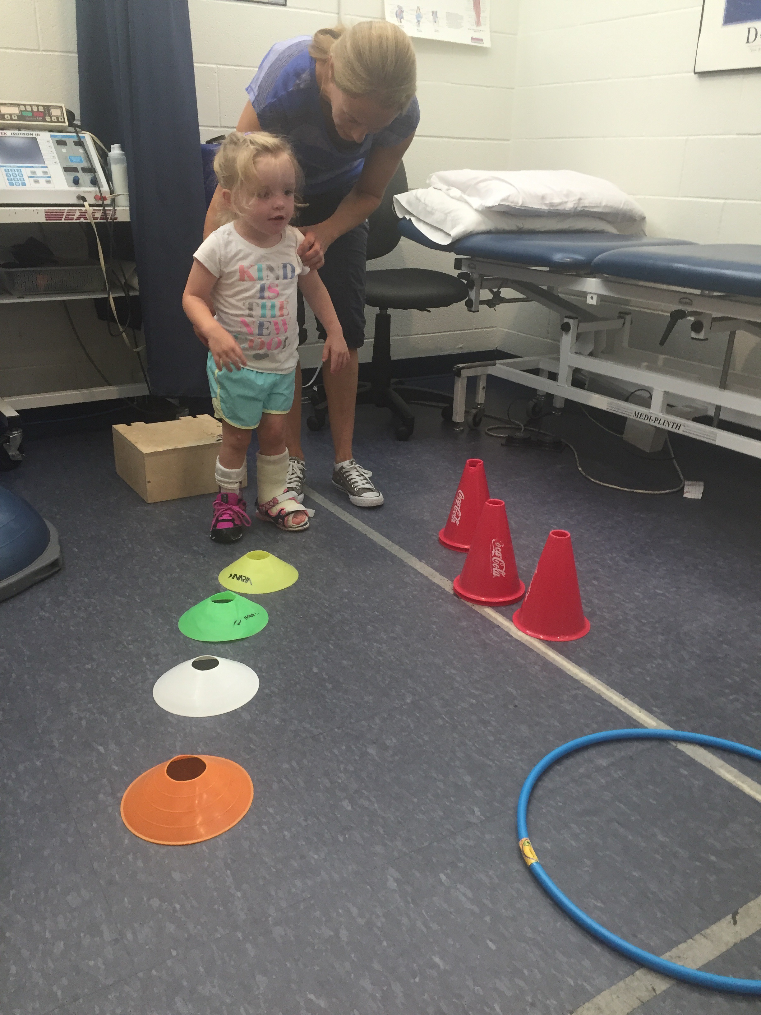 Madi and Claire worked hard this morning in Physio. Something new that they attempted was walking through an obstacle course. Madi had to navigate and decide when to step over things or go around.