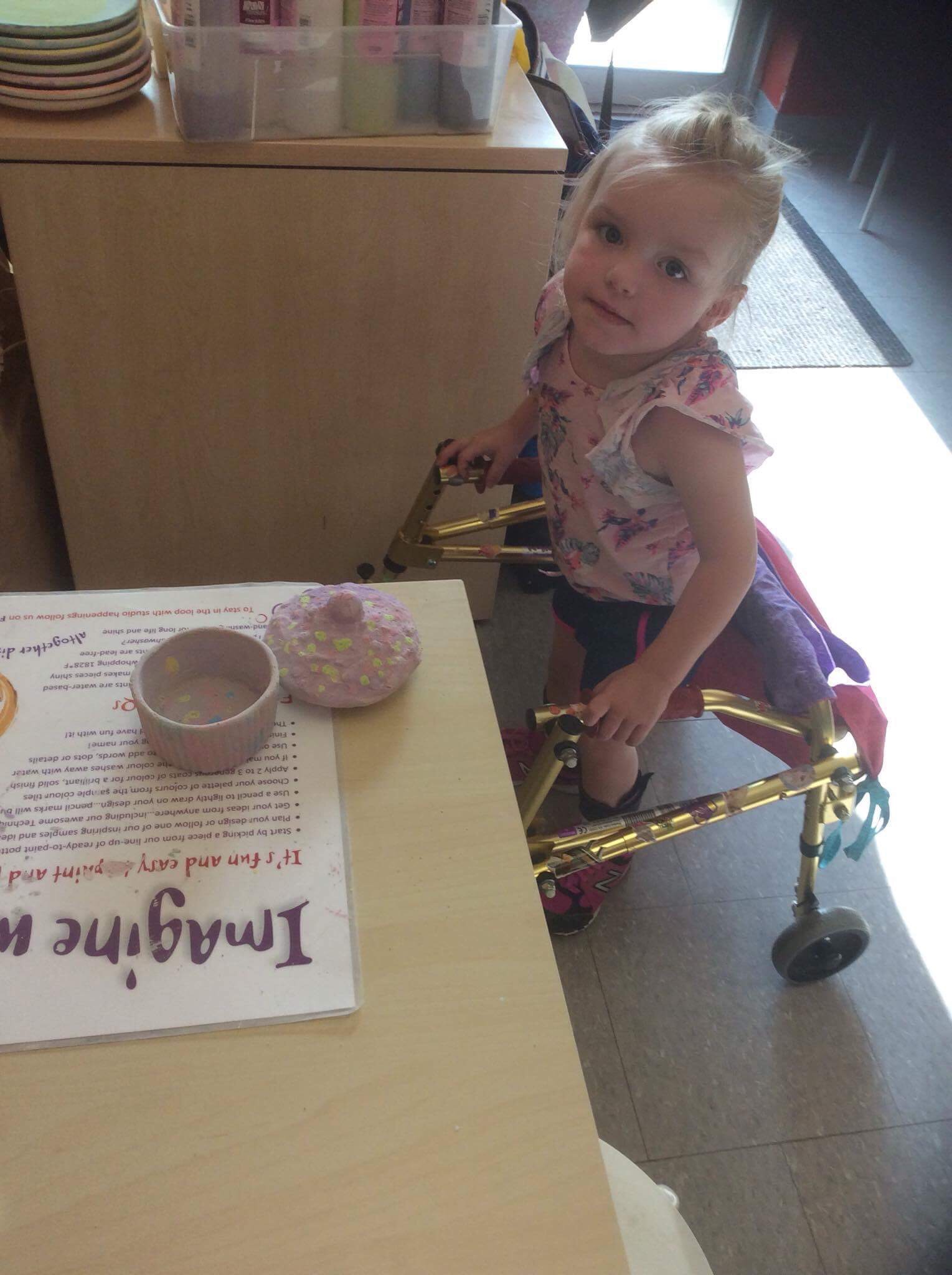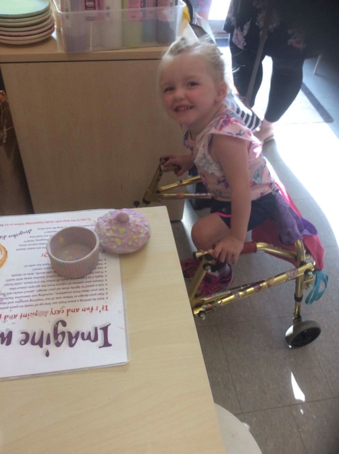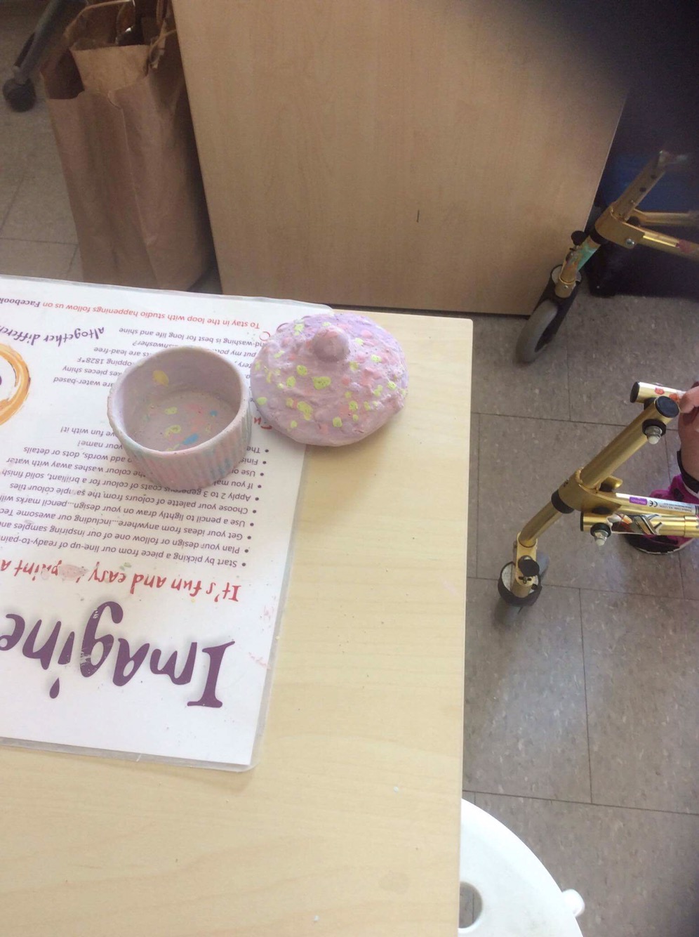 Madi chose a cupcake shaped jar to paint that she could later put hair clips or elastics in. She had a blast painting!