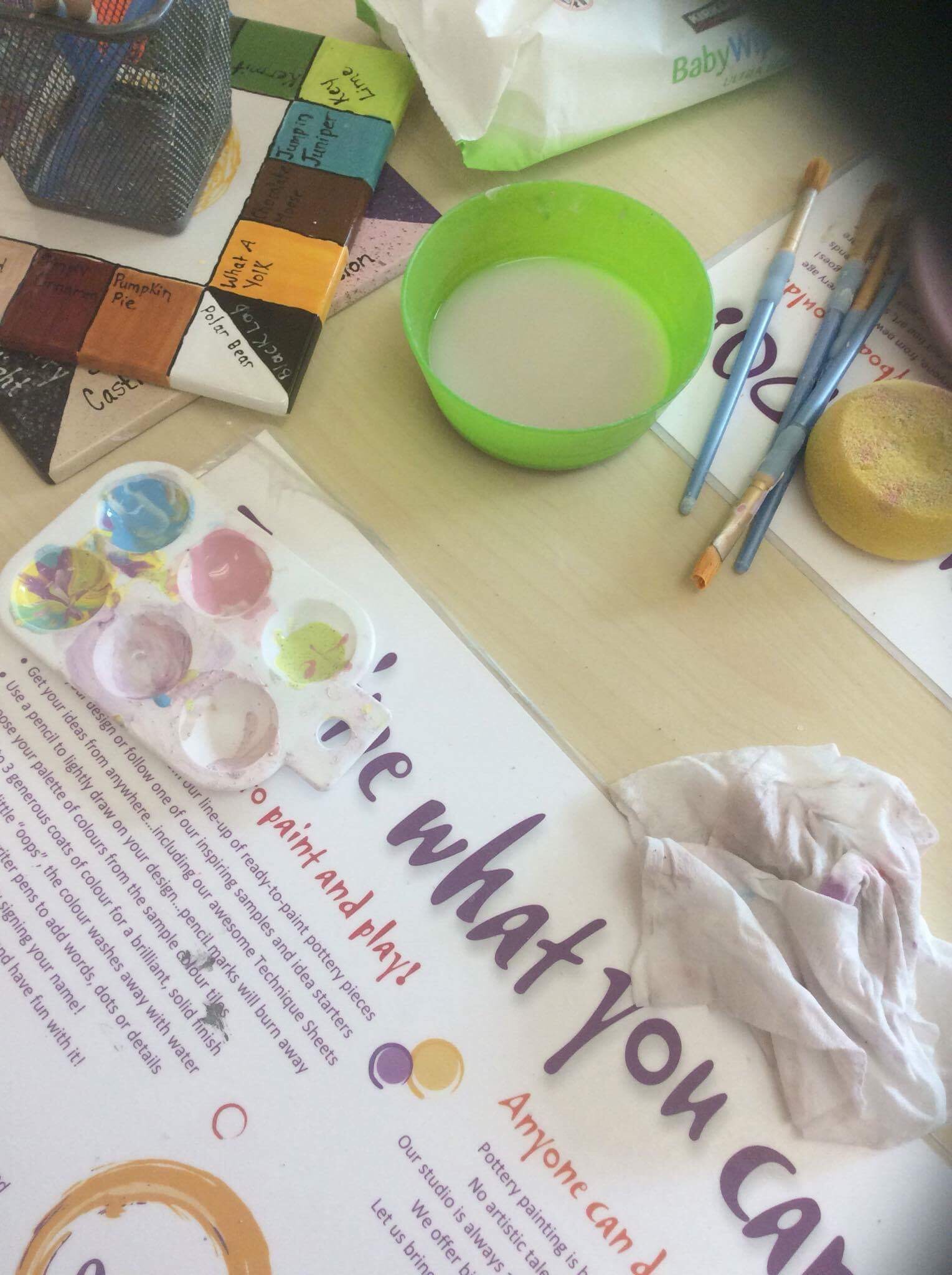 Nana picked up Madi from camp and then went home for some lunch. She visited with Papa over lunch and told him all about camp. Nana and Madi then went to a special craft place called Crockadoodle to do some painting!