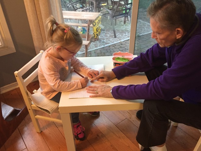 After the trip Madi headed to March of Dimes to work with Monika. She worked on reading sentences, new words and did walking and standing in her SMO’s.
