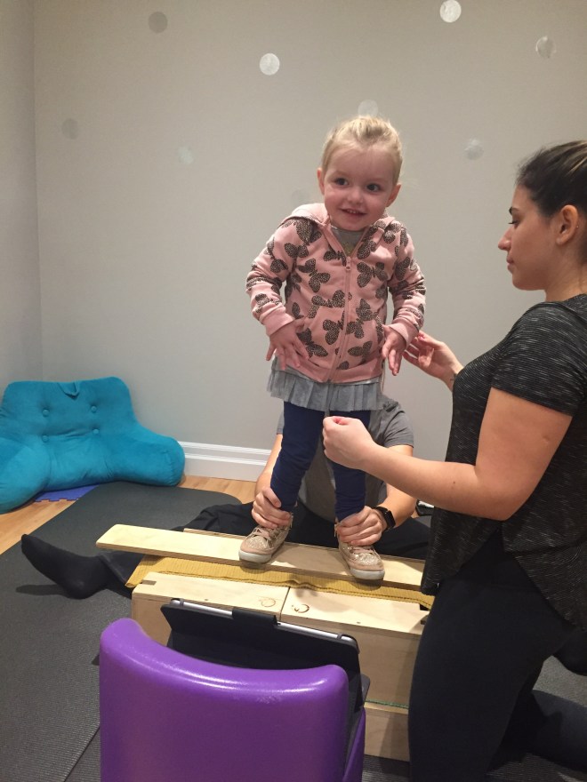 Madi had her first session back with Jo-Anne today after taking a break to work with Jenn & Mike. She was noticeably stronger and was showing off her little muscles. It was so wonderful to see! Jo-Anne really pushed her to try new things and they did great work together.